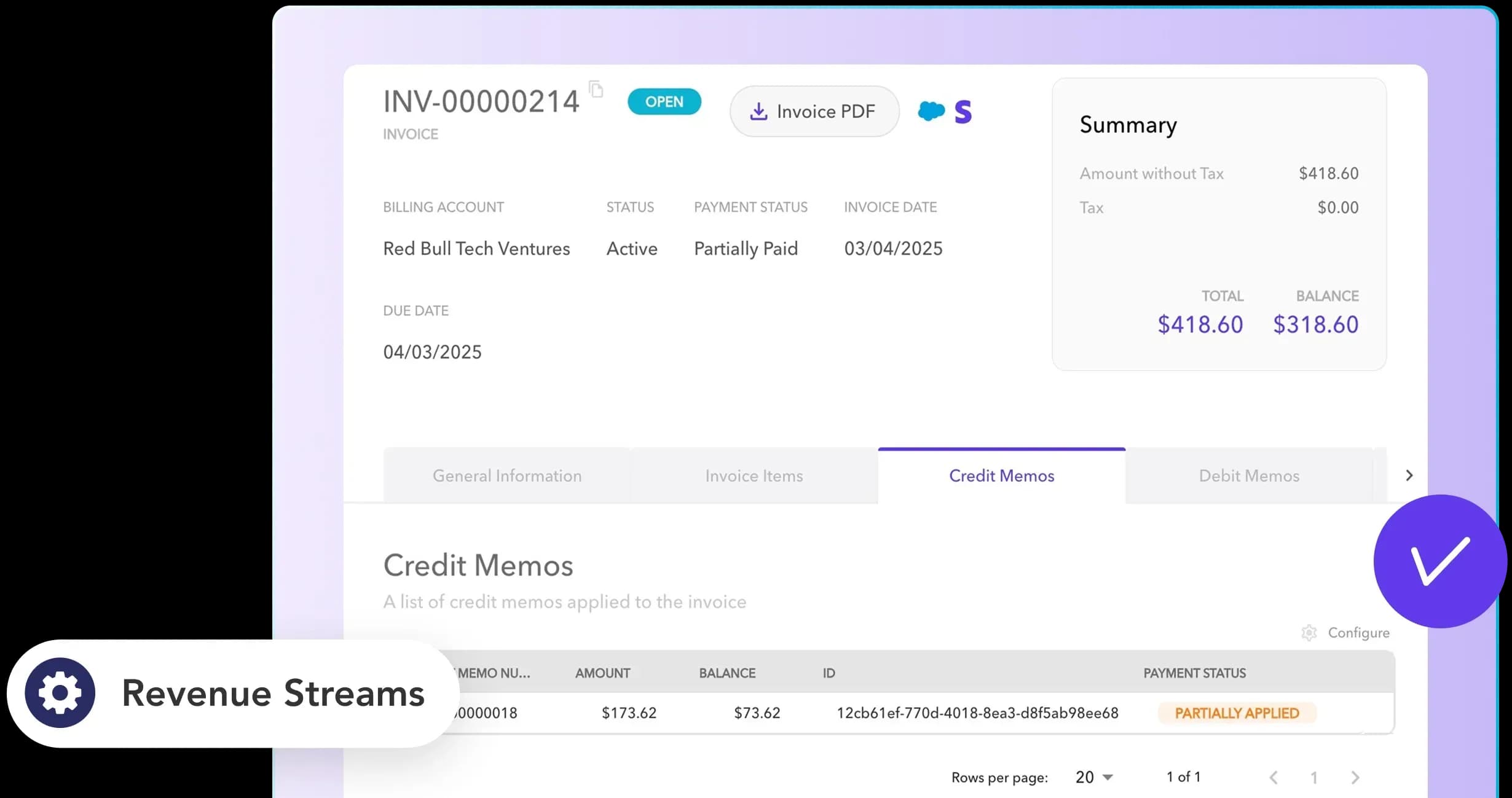 - One billing engine that supports subscriptions, usage-based models, services, physical goods, and hybrid deal structures